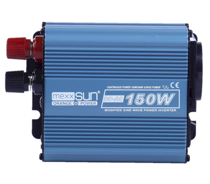 Mexxsun MXS-150 – простой, качественный и главное безопасный в работе инвертор с модифицированной синусоидой. При пусковой мощности 300 ВА и номинальной 150 Ватт предназначен для преобразования напряжения с постоянных 12 Вольт в переменные 220 Вольт. Модель располагает высокоэффективной защитой от пониженного или повышенного напряжения. Так при напряжении ниже 10,5 Вольта или выше 15 Вольт инвертор автоматически отключается. Также предусмотрена защита от перегрузок и перегрева. Подключение производится через универсальную розетку и клеммы. Размеры: 136x95x57 миллиметров.