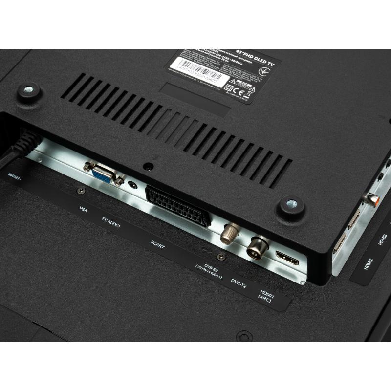 Наличие 3 HDMI портов позволяет превратить телевизор Vinga L43FHD25B в домашний медиацентр. К нему можно подключить игровую консоль и медиаплеер, что компенсирует отсутствие встроенной функции Smart TV.