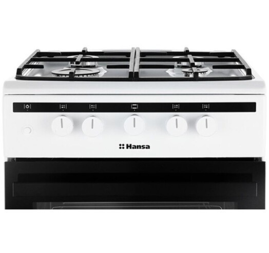 Hansa FCGW 580977 можно купить по доступной цене и убедиться в приятном соотношении цены и качества. Общая мощность плиты составляет 9 кВт. В комплекте с плитой идут также 2 противня и решетка. имеется выдвижной ящик для посуды в нижней части плиты, под духовкой. Управляется плита переключателями с подсветкой.
