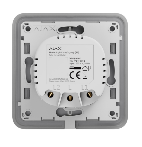 Ajax LightCore 2-way – инновационная разработка 2023 года в лице реле для проходного выключателя. Реле рассчитано на управление приборами мощностью от 5 до 600 Ватт. В работе не использует нулевой кабель питания. Приводит в восторг полная совместимость со всеми типами выключателей. Форм фактор соответствует эвропейским стандартам (55).