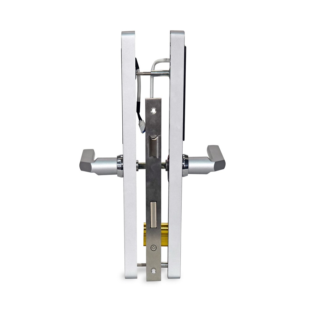 TriniX TRL-5105BTF – разработанный с учетом современных потребностей автономный электрический замок с открытием через код (до 200), отпечаток пальца (до 200), бесконтактную карточку (Mifare, до 200) или приложение (TTLock). Такое разнообразие методов доступа позволяет подобрать наиболее оптимальное решение под той или иной объект. Среды интерфейсов Micro USB и беспроводной Bluetooth. Установка замка допустима на дверь в основе которой заложено дерево или металл, а толщина створки находится в рамках от 35 до 90 миллиметров. В основе же самого замка идет нержавеющая сталь. В питании замка TriniX TRL-5105BTF берут участие четыре батарейки популярного типоразмера АА.