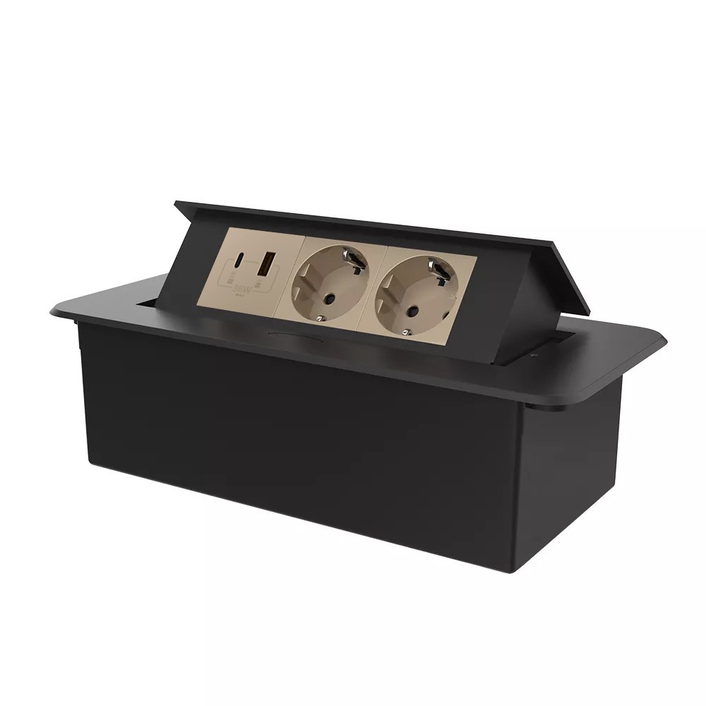 Выдвижной розеточный блок с тремя розетками Livolo применяется для установки в столах и фальшполах, имеет степень защиты IP40, изготовлен из металла и имеет покрытие специальной краской. Это хороший вариант, установить скрытые розетки, который может быть использован для установки на кухне, на рабочих местах в офисе или же в конференц-залах. Розетки плавно выдвигаются после нажатия кнопки.
