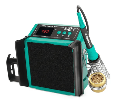 Yihua 948DQ-II – портативная контактная паяльная станция мощности 60 Ватт с дымопоглотителем. Съемный паяльник с керамическим нагревателем реализует нагрев в рамках от +200 до +480 градусов по Цельсию, при этом стабильность равна плюс минус 3 градуса по Цельсию. Регулировка температуры находится на автоматической основе. В целях экономии предоставлен спящий режим, а также функция автоотключения. Размеры: 90x145x154 миллиметра.