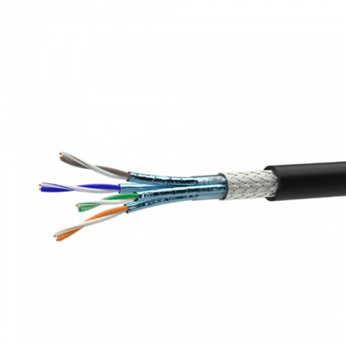 Отвечающий высоким стандартам качества кабель витая пара для уличной прокладки от известной украинской компании Одескабель. Кабель представляет категорию 7 и является экранированным (S/FTP). Конструкция состоит из 4-х пар медных жил сечения 0,56 мм2.