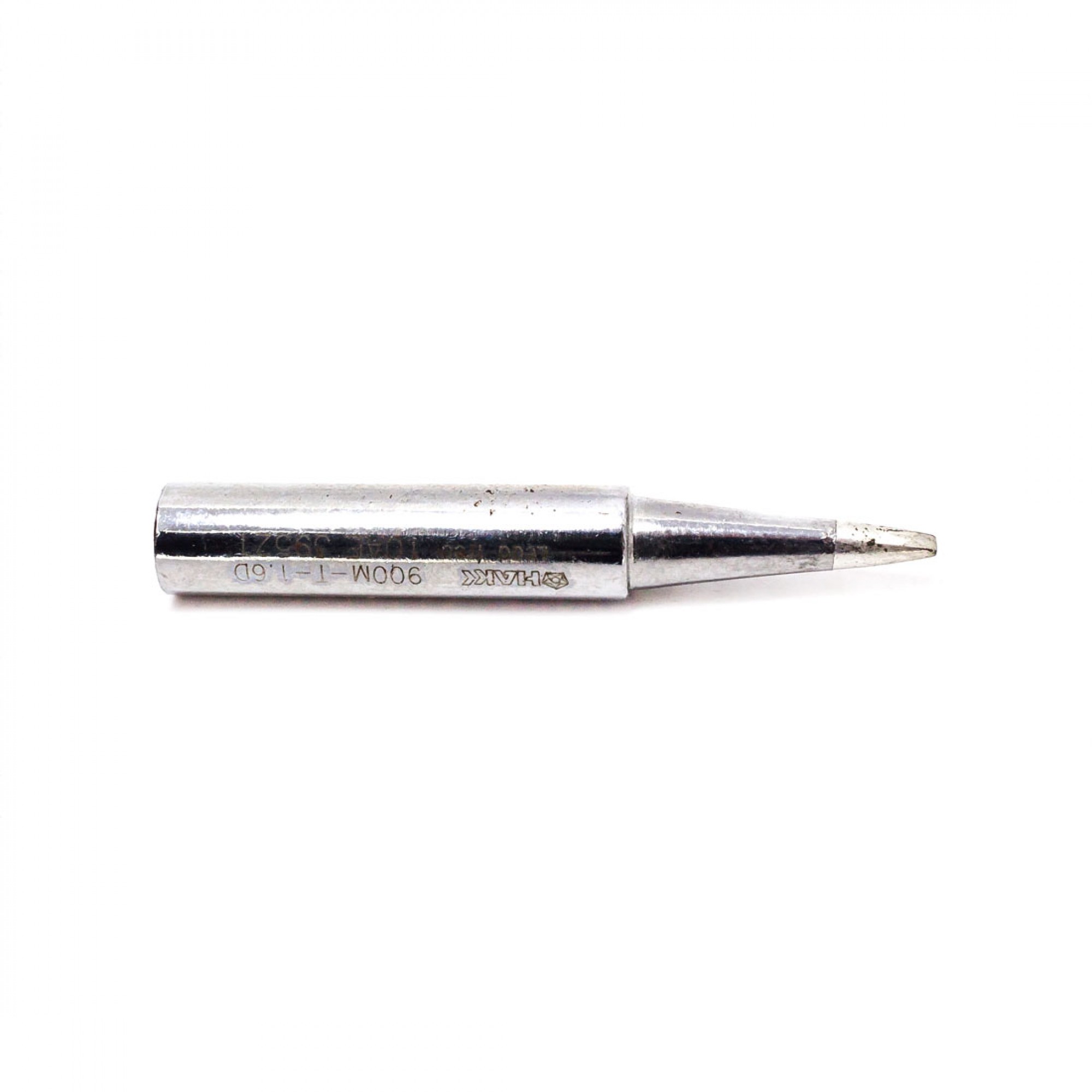Hakko 900M-T-1.6D – никелированное жало для паяльника с плоской формой наконечника. Внешний и внутренний диаметр равен 6,5 и 4 миллиметра соответственно. Диаметр наконечника 1,6 миллиметра. Длина общая 42 миллиметра, только острия 0,5 миллиметра.