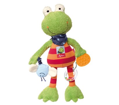 Интерактивная лягушка Folunder Frog для первых открытий ребенка. Игрушка оснащена множеством деталей, побуждающих ребенка к движению и познанию новых текстур. Особая игрушка будет способствовать всестороннему развитию ребенка с самого рождения. А для младенцев игрушка специально оснащена прорезывателем; дети могут грызть игрушку, она абсолютно безопасна и не навредит. Кроме того, игрушка может «бряцать», или «скрипеть». Подвески-погремушки будут побуждать ребенка к движению, благодаря чему он будет развивать тактильное, сенсорное, слуховое восприятие. Размер игрушки: 27х7х10 см. Для детей с рождения.