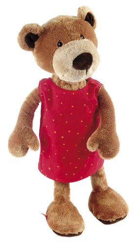 Симпатический медвежонок – мягкая, очень приятная на ощупь игрушка. Медвежонок одет в милое текстильное платье. Особенность платья в том, что оно двустороннее. То есть сегодня одеваем медвежонка в красное платье, а завтра – в зеленое. Ребенок сможет переодевать животное в зависимости от своего настроения или, например, погоды. Sigikid создает игрушки с любовью и теплотой. Именно такие ощущения дарит милая мягкая игрушка. Изготовлена из безопасных материалов: текстиля и полиэстера. Игрушка размером 40 см.