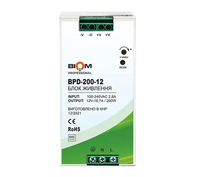 - Блок живлення на DIN-рейку Biom Professional DC12 200W BPD-200-12 16,7A
