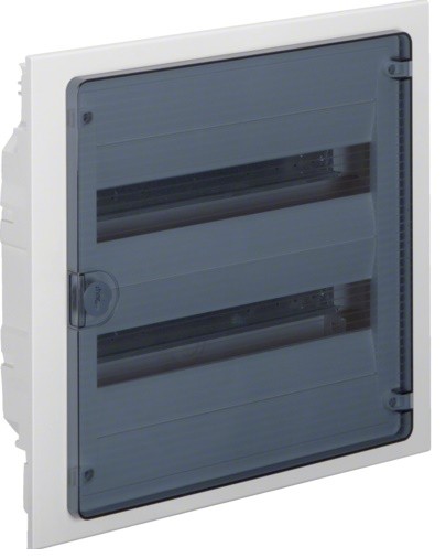 Hager Golf VF218TD – пластиковый щит в/у на 36 модулей (2 ряда по 18) для встраиваемой установки. Подойдет для оборудования с глубиной до 70 миллиметров. Класс изоляции II. Номинальное напряжение 400 Вольт, ток 63 Ампера. Закрытые дверцы происходит на защелку. Открытие дверцы допускается на 180-ть градусов. Ниша в стене: 426x382x72 миллиметра. Размеры корпуса: 460x418x98 миллиметров. Корпус соответствует классу герметичности IP40, классу защиты от ударов IK07. Цвет белый. Температура среды допустима в диапазоне от -25 до +40 градусов по Цельсию.