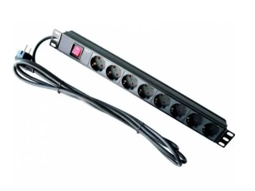 Hypernet SPP8-E – блок из восьми розеток специально разработанный для построения питания в серверных стойках и шкафах 19-ти дюймовой конструкции. Основу корпуса здесь составил негорючий и прочный пластик. Допустимая мощность нагрузки 3500 Ватт, и по току до 16-ти Амперов. Напряжение на входу допустимо в широких рамках от 220 до 250 Вольт. Подключение к сети через вилку CEE 7/7. Присутствует контакт заземления. Также радует наличие подсвечиваемой кнопки-выключателя. Кабель несъемный и идет в длине 1,8 метра. Цвет черный.