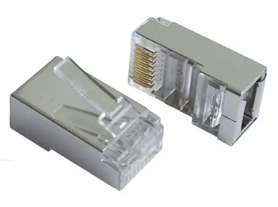 Набор из 100 коннекторов RJ-45 для подключения компьютера или другого оборудования к источнику сигнала в STP сети категории Cat 5e. Все четыре контакты позолочены.
