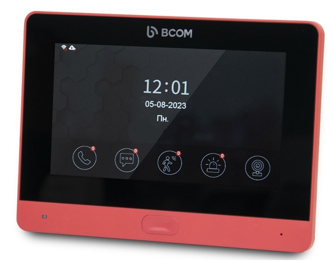 Bcom BD-760FHD/T Red – потрясающая новинка 2023 года в лице цветного четырехканального видеодомофона с IPS экраном диагонали в семь дюймов (1024 на 800 пикселей) и