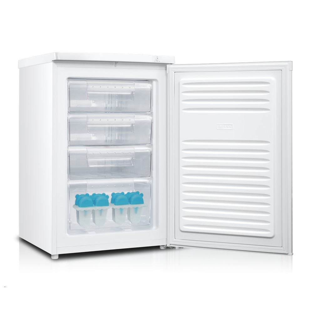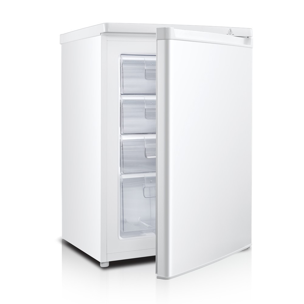 Настольная отдельно стоящая морозилка объемом 92 л может вместить гораздо больше продуктов, в отличие от встроенной в холодильник. Благодаря миниатюрным габаритам легко становится рядом с холодильником – 850 мм высоты, 550 мм ширины и 580 мм глубины. Модель спокойно работает при стандартном напряжении в 220 В. Шкаф выполнен из HIPS пластика с наружной металлической поверхностью. Это дает возможность внедрить морозильную камеру абсолютно в любой интерьер. Передняя утопленная ручка выполнена из пластика, лаконично дополняет дизайн. Ножки можно отрегулировать исходя из особенностей пола, чтобы 33 кг морозилки удобно стояли и не шатались.