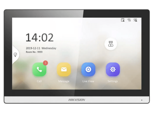 HikVision DS-KH6350-WТE1 – стильный и многофункциональный сетевой Wi-Fi домофон с диагональю цветного сенсорного TFT LCD экрана 7 дюймов. Дисплей здесь допускает вывод картинки в максимальной эффективности 1024 на 600 пикселей. Новый графический интерфейс радует глаз и еще более создает условия комфортной эксплуатации. Для хранения материала возможно подключить TF карту памяти с емкостью до 128 гигабайтов. Следует помнить ято запись на карточку только для фото. В дополнение идет восемь тревожніх входов. Питание доступно с применением уже ставшей легендарной PoE технологии. Прочный корпус из пластика надежно защищает всю начинку от негатива. Размеры корпуса HikVision DS-KH6350-WТE1: 175x113,5x21 миллиметр