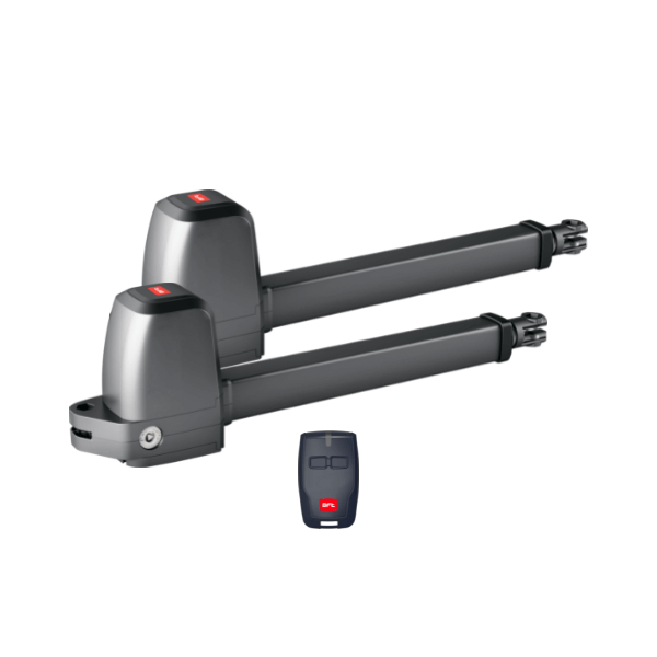 Комплект поставки BFT Athos AC A25 Base Kit включает в себя два привода Athos AC A25 (вес привода 5,3 килограмма), двухканальный пульт дистанционного управления, блок управления Alena SW2. В привод внедрен двухканальный приемник рассчитанный на 63 пульта.
