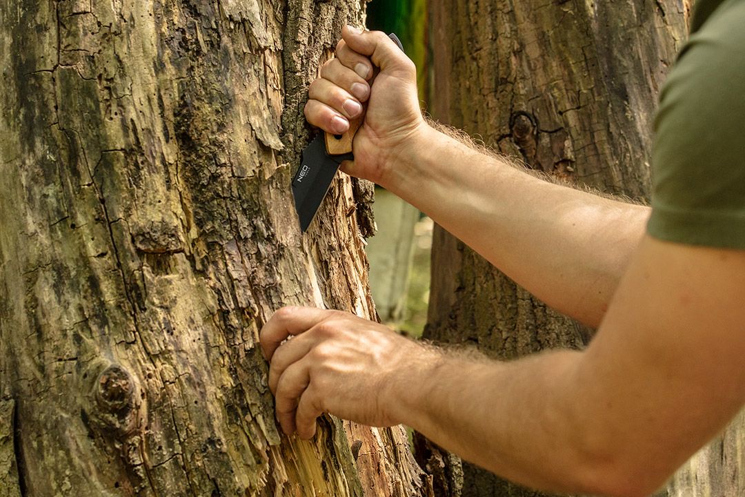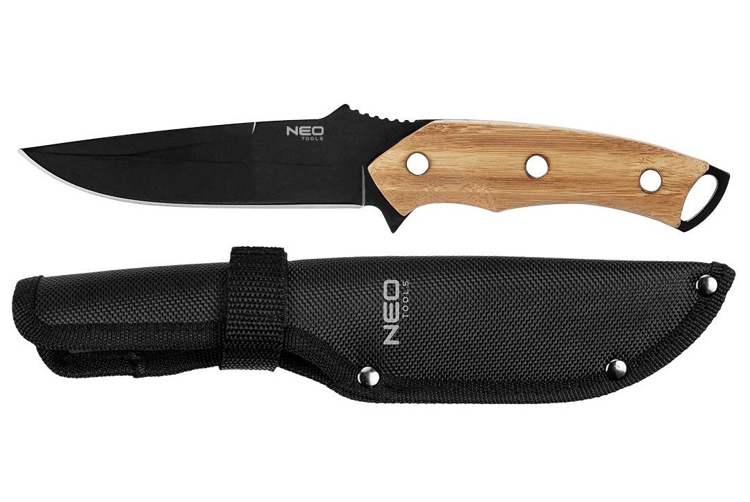 - Ніж тактичний Neo Tools Full Tang, 250мм, лезо 145мм, бамбукова ручка, титанове покриття леза, нейлоновий чохол