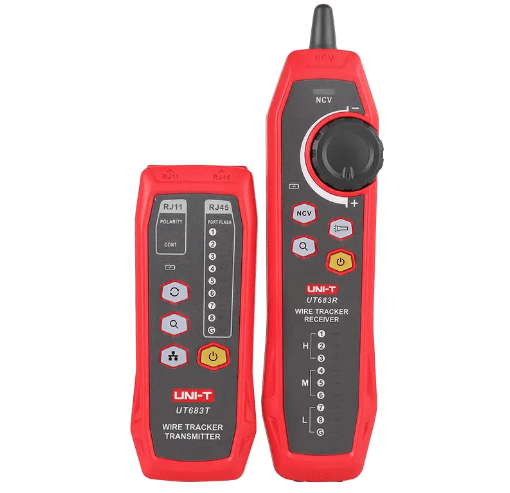 Тестер кабеля UNI-T UT-683KIT предназначен для проверки телефонных и сетевых проводов. Определяет полярность, короткое замыкание, обрыв. Кроме того, данный тестер может обнаруживать скрытую проводку благодаря наличию детектора напряжения (NCV). Дополнительной функцией есть наличие встроенного фонарика.