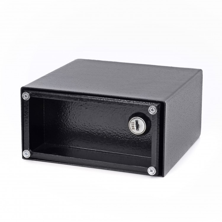 Размеры внешние – 74x145x140 миллиметров, внутренние – 68x138x85 миллиметров. Толщина корпуса 1,4 миллиметра. При таких разъема внутренний объем составляет 0,008 литра. Внешне сейф защищен порошковым покрытием.