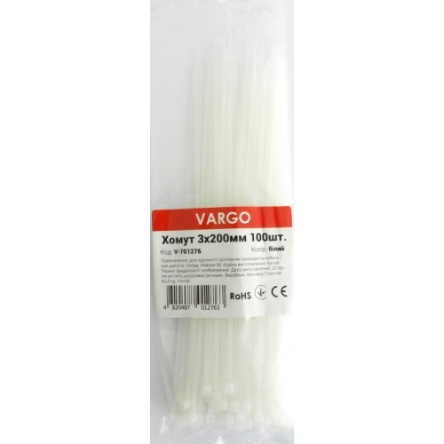 Стяжки Vargo V-701281, 8х400мм, white, 100 шт.