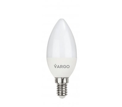 Vargo V-111142 – собранная исключительно из экологически безопасных и долго служащих компонентов светодиодная лампа формы С37 и цоколем Е14. При потреблении всего 9 Ватт лампой выдается поток на уровне 90 Ваттной лампы накаливания. Световой поток в 855 Люменов успешно рассеивается на большой угол. Цветовая температура освещения холодная 6000K. Напряжение допускается в широких рамках от 185 до 265 Вольт, что способствует безопасной эксплуатации в условиях нестабильной сети.