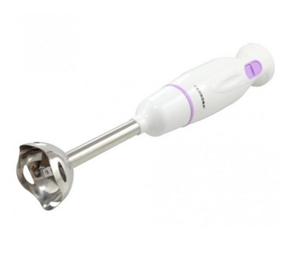 По типу это погружной, ручной блендер, при создании которого использовались два материала: прочный ударостойкий пластик и высококачественная каленая сталь с хромовым антикоррозийным напылением, из которой выполнена рабочая часть. Количество скоростных режимов два под каждый имеется отдельная кнопка. Мощность 300 Вт, это позволяет обрабатывать сложные ингредиенты с минимальным потреблением электрической энергии.