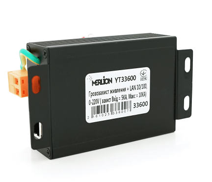 - Грозозахист живлення + LAN 10 / 100M, 0-220V ( захист Вхід = 5KA, Макс = 10KA)