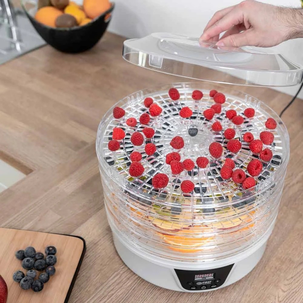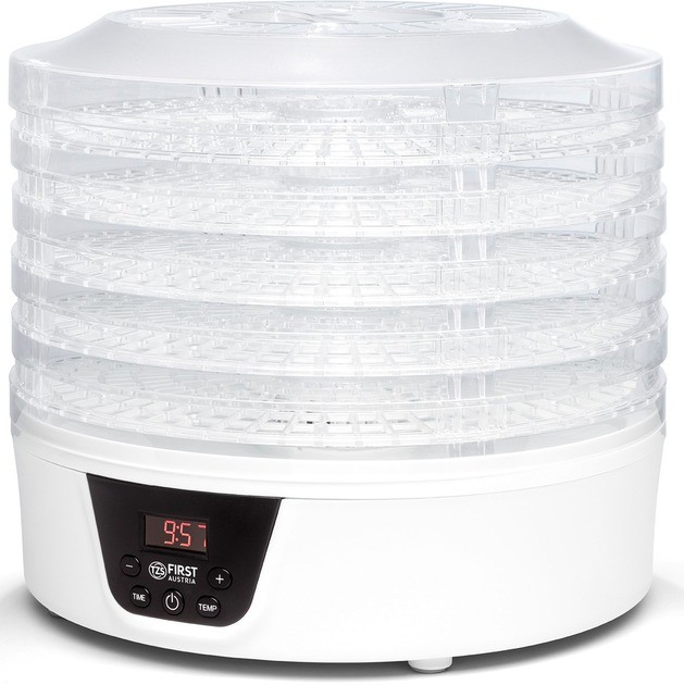 Не покупайте дорогие сухофрукты. Сделайте сами. Намного лучше. Более дешевый. На пяти полках с помощью практичного дегидратора вы сможете сушить все, что нравится вам и вашей семье. В качестве сухого перекуса в офисе, в школе или в дороге. Будь то фрукты, овощи или мясо, процесс сушки происходит полностью автоматически при температуре от 35°C до 70°C. Хорошо то, что пищу, которая в противном случае осталась бы, можно переработать и хранить дольше. Травы также можно сушить и перерабатывать в смеси специй.