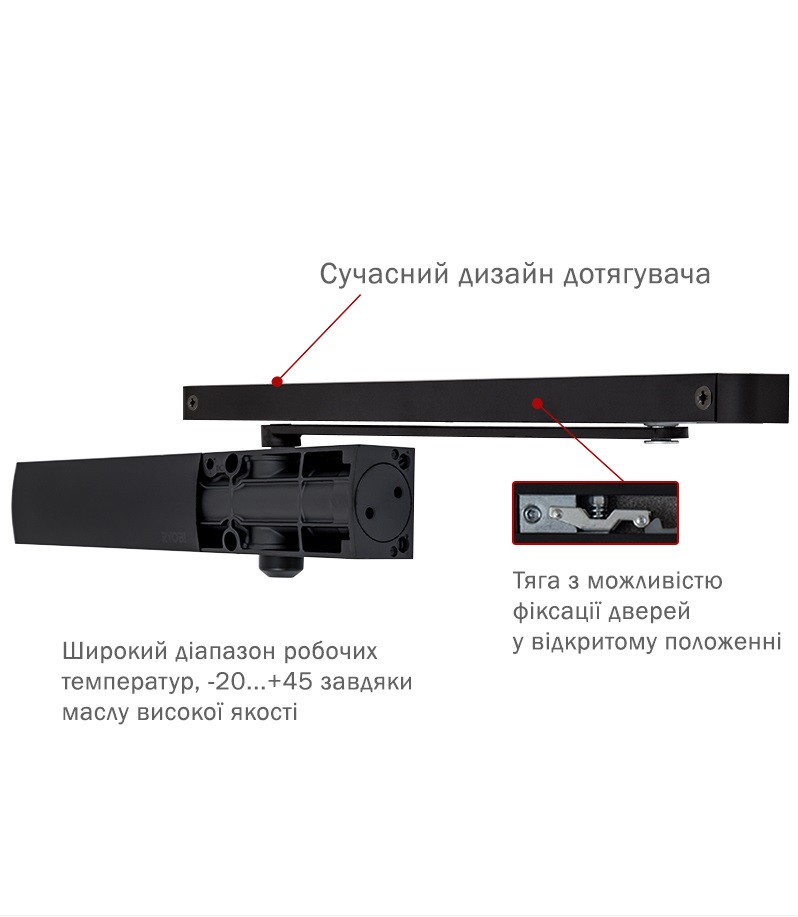 - Дотягувач накладний RYOBI 1200 D-1200 BLACK STD_ARM EN_2/3/4 80кг 1100мм FIRE