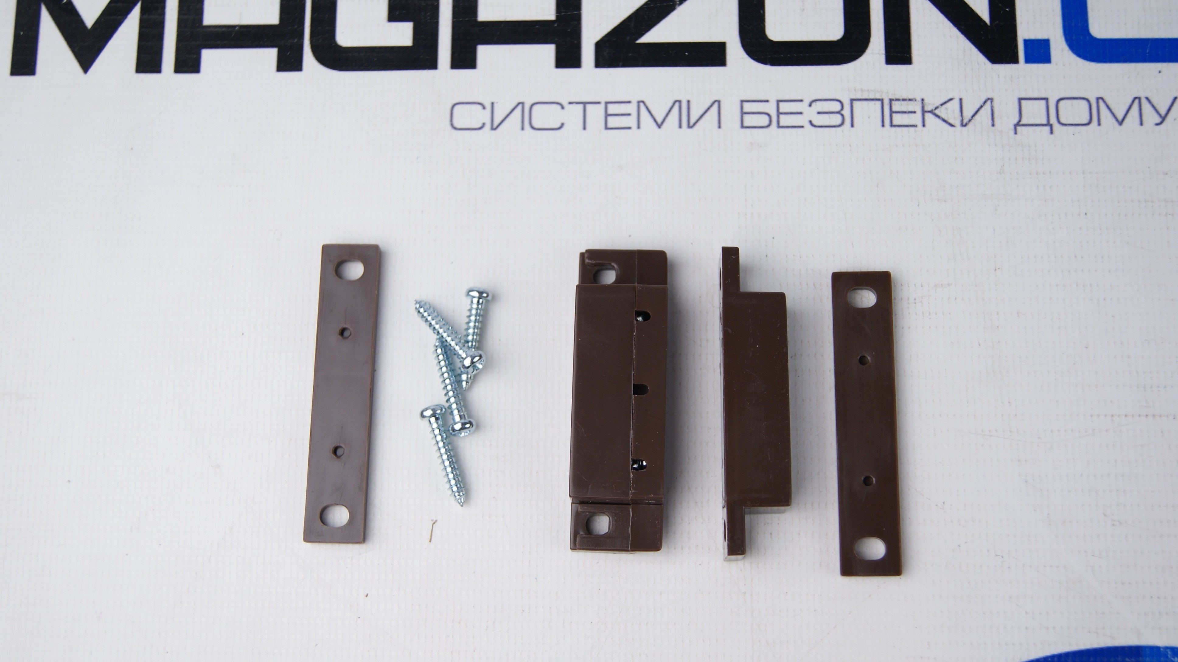 Накладной магнитный контакт с декоративными накладками, зазор 2,54см, замкнутый шлейф, цвет: коричневый.