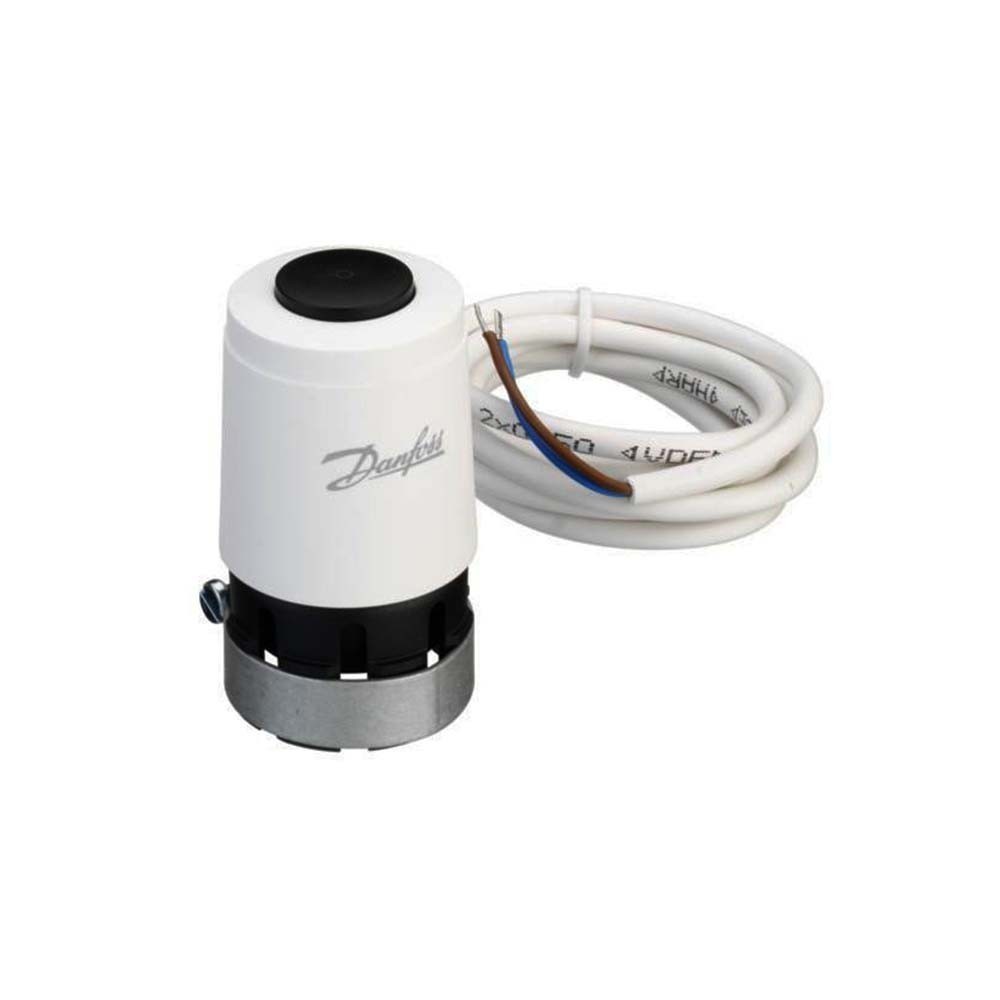 Danfoss, термоэлектрический привод 220В NC TWA-A на клапаны Danfoss RA. Термоэлектрический привод клапана Danfoss разработан для систем водяного отопления. Он может быть установлен как на гребенку, так и непосредственно на батарею отопления, главное, чтобы он соответствовал типу и габаритам используемого клапана. В ряде случаев, когда клапан уже установлен, но имеет другой тип подсоединения (другая резьба, размеры, тип крепления), также можно установить такой термоэлектрический привод, используя специальные переходники, например 014G0256 или 014G0253.