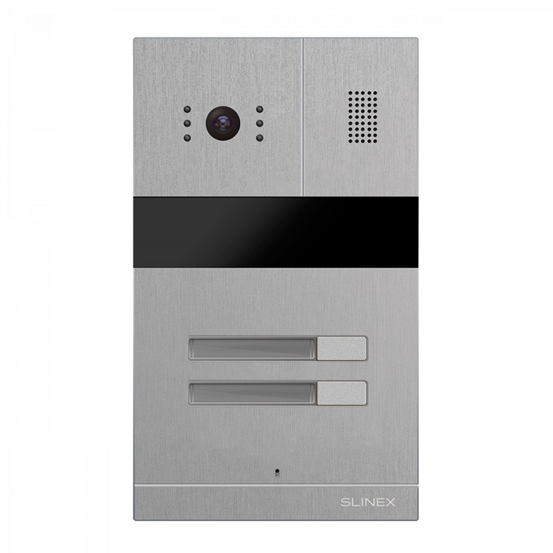 Slinex MA-02 – потрясающего внешнего вида и функциональности вызывная панель на два абонента с встроенным считывателем на борту. Считыватель комбинирован по EM-Marin и Mifare/NFC карточкам доступа. Память считывателя рассчитана на 248 таких карточек.
