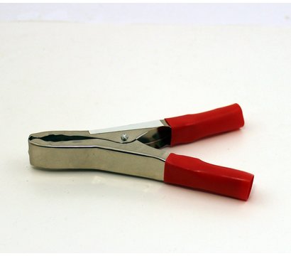 Сочетающий в себе простую и надежную конструкцию аккумуляторный зажим типа "крокодил"для быстрого построения временного соединения. Зажим рассчитан на работу в условиях пропускаемой силы тока не более 50 Амперов. Длина зажима составляет все 80 миллиметров. В основу контактного компонента легла сталь облаченная в никелированное покрытие. Челюсти зажима плотно сжимаются посредством пружины, размещенной из другой стороны. Фактор безопасности при эксплуатации гарантирует изоляция ручек на ПВХ основе. Цвет изоляции здесь красный.
