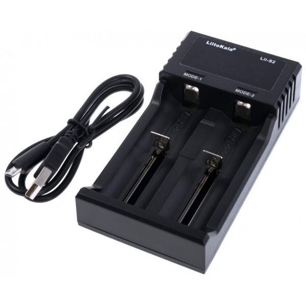 Liitokala Lii-S2 – небольшая, современная двух слотовая зарядка для аккумуляторных батареек типоразмеров AA, SC, AAA, С. Модель допускает выбор тока заряда из вариантов 0,5 , 1 и 2 Ампера. К зарядке допускаются батареи различных электрохимических систем. В частности успешной зарядке поддаются акб на базе Ni-MH/Ni-Cd/Li-ion/LiFePO4 систем. Первые три распознаются устройством автоматически и последний задается вручную. Роль индикатора в устройстве играет цифровой дисплей. Подключается зарядка к любому USB-источнику снабжения.