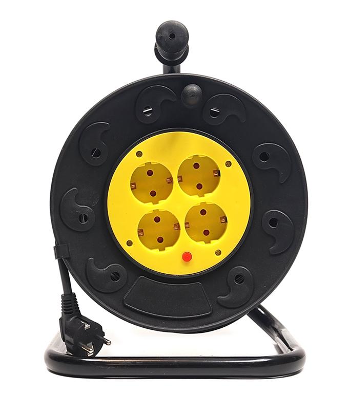Сетевая катушка PowerPlant JY-2002/25 25м Black/Yellow — PPRA10M250S4 4 розеток