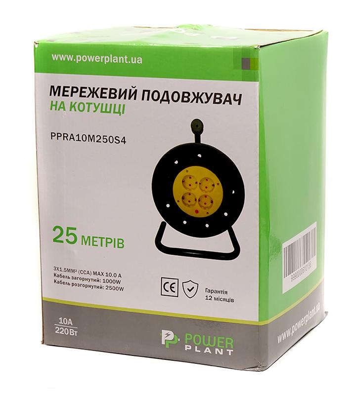 PowerPlant JY-2002/25 25м Black/Yellow (PPRA10M250S4) – 25-ти метровой длины удлинитель на катушке, широко применяемый для подключения различной бытовой техники и электроприборов отдаленно от стационарных розеток. На борту удлинителя идут четыре розетки евростандарта с общей допустимой нагрузкой до 2.5 кВт. Проводник медный, 3 х 1.5 мм2. Безопасность использования PowerPlant JY-2002/25 25м Black/Yellow находится на высшем уровне так как под корпус был выбран огнеупорный пластик. Предусмотрена эффективная защита от КЗ, скачков напряжения для подключенной электротехники. Класс герметичности IP20. Разработчиками предусмотрена удобная рукоятка для комфортности портативности. Весь неприменяемый провод не создает дискомфорта, поскольку находится в смотанном виде. Цвет корпуса черный/желтый.