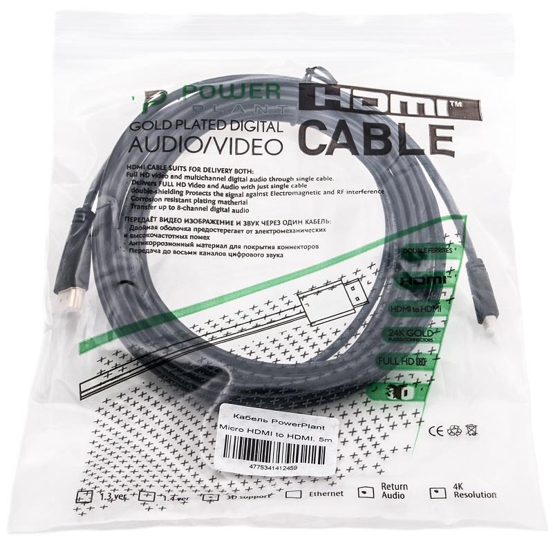 Кабель мультимедийный PowerPlant HDMI-microHDMI v1.3, 5м, Black — KD00AS1245