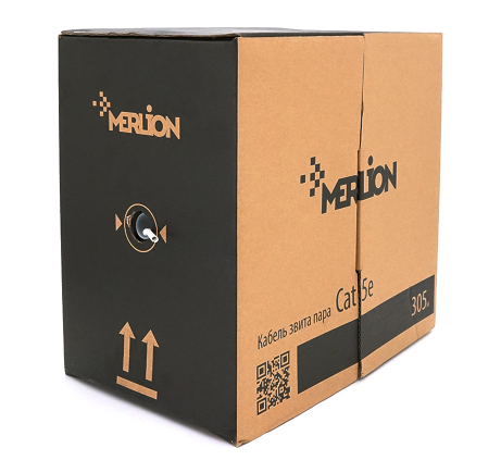 - Кабель витая пара Merlion (11354) КВПЭ FTP 24 AWG, CCA, 4х2х0.51 мм, 305м, Corton Box