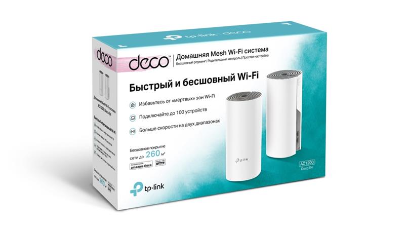 Deco Е4 забезпечує швидке і стабільне з"єднання зі швидкістю до 1167 Мбіт / с і працює з основними інтернет-провадеров і модемами.