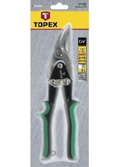 Ножиці по металу TOPEX, довжина 250 мм, служать для різання металу товщиною до 1.2 мм. Головка з хромованадіевой стали. Спеціально профільовані, зручні двокомпонентні рукоятки добре лягають в долоню. Гострі кромки губок легко і плавно ріжуть метал.