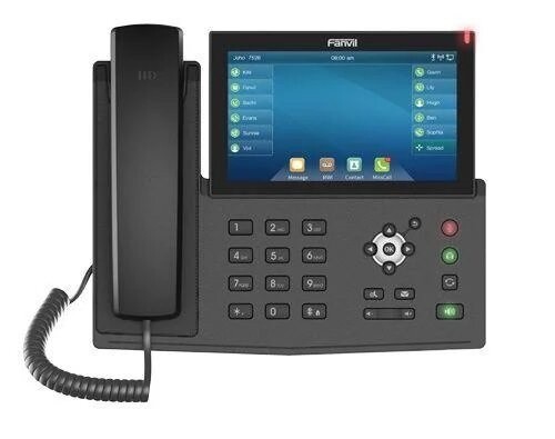 IP телефон Fanvil X7 висококласний IP телефон корпоративного рівня з 7 дюймовим сенсорним дисплеєм і 127 віртуальними DSS для індикації зайнятості абонентів і швидкого набору. IP телефон Fanvil X7 корпоративного рівня підтримує 20 SIP акаунтів, кольоровий сенсорний РК-дисплей розміром 7 дюймів (800 x 480) і до 127 віртуальних клавіш швидкого набору / клавіш BLF, які дозволяють користувачам працювати більш продуктивно і ефективно. Вбудований Bluetooth, WiFi, IP камера і підтримка кодека H.264 дозволяє здійснювати відеодзвінки і використовувати SIP відеодомофон. IP телефон Fanvil X7 є ідеальним вибором для бізнес-користувачів, які шукають високоефективний і надійний IP-телефон з підтримкою відеодзвінків і з розширеними функціональними можливостями.