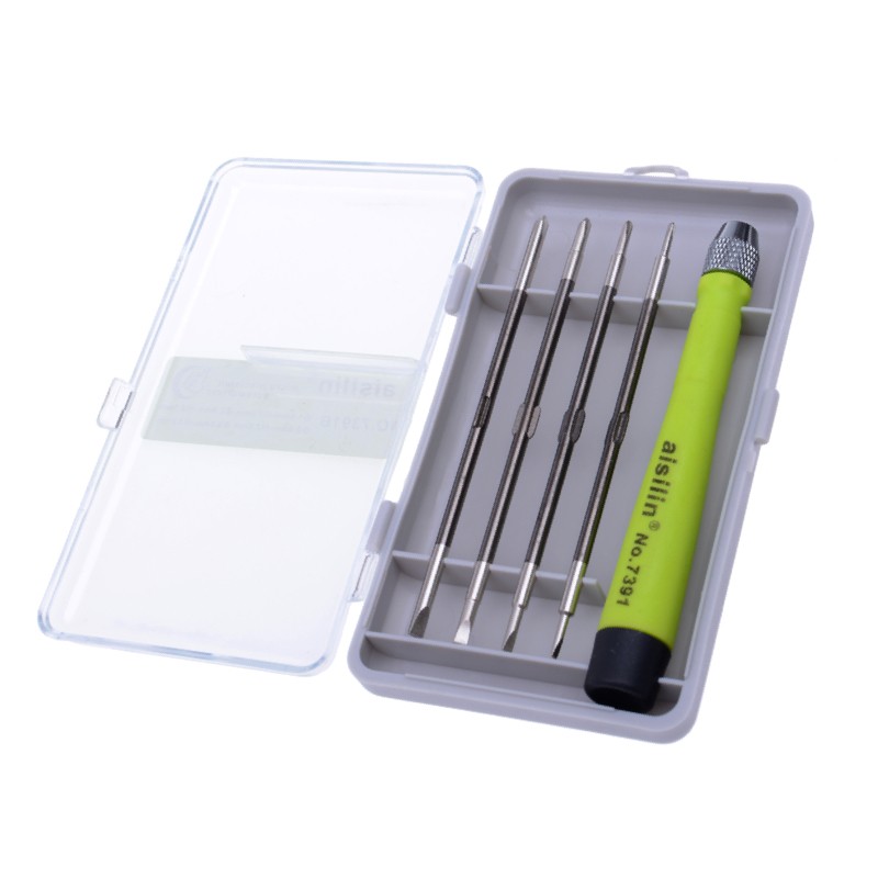 Викрутка - необхідний інструмент при виконанні монтажних і ремонтних робіт. Якщо об`єктом ремонту є, наприклад, мобільний телефон або ноутбук, то для виконання такої точної й делікатної роботи потрібні спеціальні прецизійні викрутки. Набір викруток Aisilin 7391B дозволяє виробляти різні види точних робіт. У наборі є викрутка-тримач, а також чотири насадки. Насадки є двосторонніми, тобто фактично дають можливість користуватися восьми інструментами з плоскими, шестигранними і хрестоподібними головками.