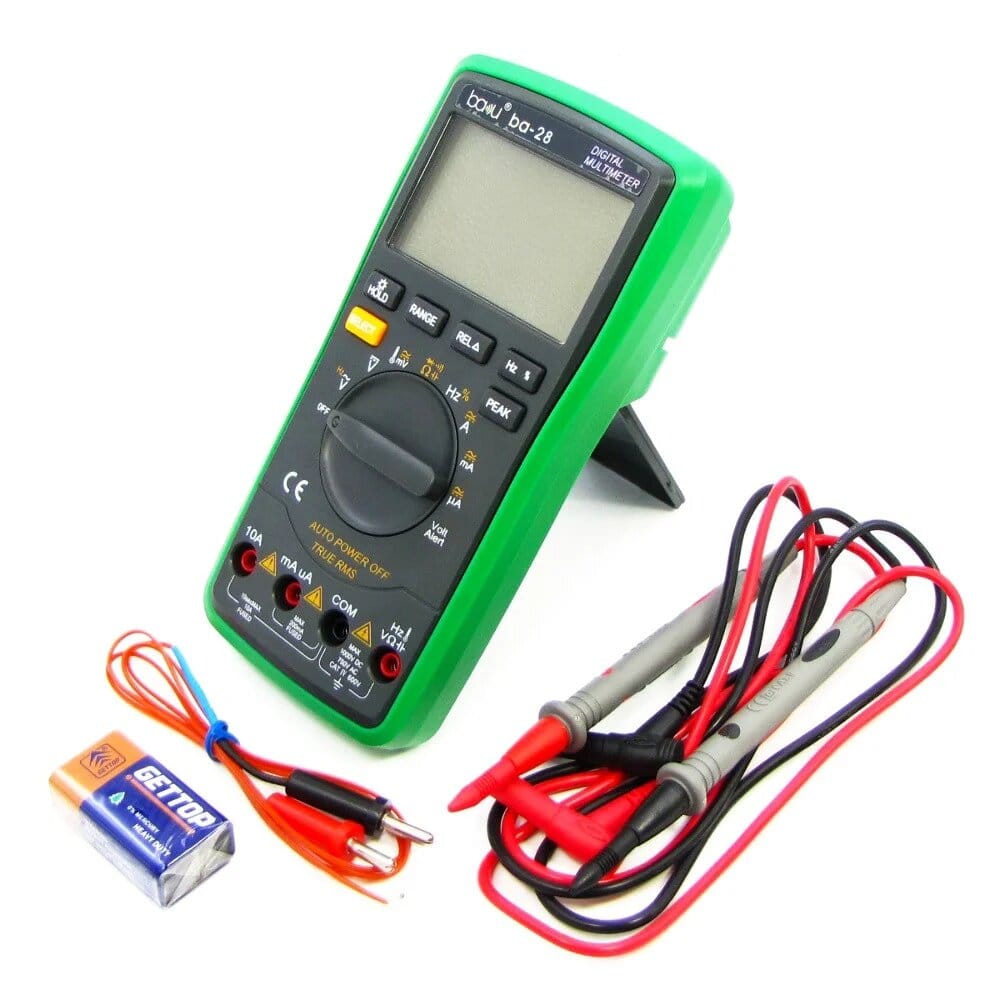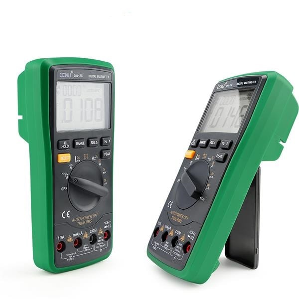 Мультиметр цифровий BAKU BA-28 призначений для вимірювання змінного, постійного напруження і струму, опору. Прилад оснащений великим і контрастним дисплеєм який не викликає напруги очей при читанні результатів вимірювання.