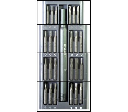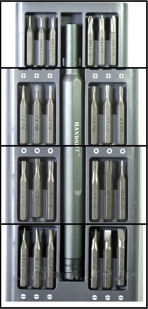HandsKit 48 в 1 - Набір прецизійних викруток з 48 шт. від відомої компанії HandsKit. Викрутка оснащена якісною ручкою з пластику сірого кольору. В набір входить викрутка і 48 біт. і металевий футляр.