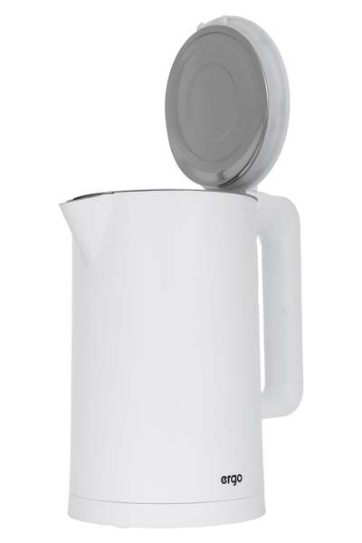 Електрочайник Ergo СТ 8070 White – кухонний прилад для тих, хто цінує ергономічний дизайн, комфорт і функціональність. Корпус має подвійні стінки і виконаний з міцної гігієнічної нержавіючої сталі. Лаконічна форма і стильний білий колір роблять модель вишуканим елементом дизайну на будь-якій кухні.
