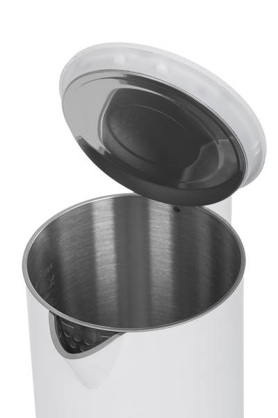 Ergo СТ 8070 White має оптимальний об`єм 1.7 літра і важить 1.47 кг. За допомогою нагрівального елемента у вигляді закритого диска, вода в чайнику закипає за лічені хвилини. Ергономічна конструкція приладу дозволяє легко очищати його від накипу і забруднень.