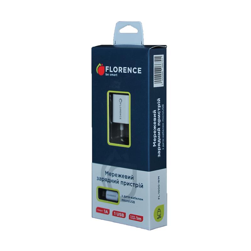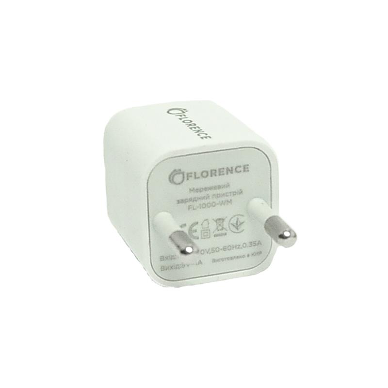 Зарядний пристрій Florence (1USBx1A) White — FL-1000-WM