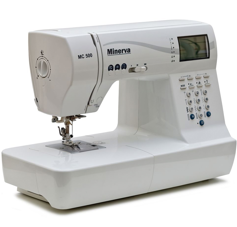 Модель Minerva MC500 — це інтелектуальний центр для творчості, що виконує 500 швейних операцій. Головна особливість пристрою полягає у наявності пам`яті, що дозволяє комбінувати до 40 зразків рядків, включаючи символи алфавіту. Це ідеально для створення унікальних лейблів або декорування одягу. Рідкокристалічний дисплей з підсвічуванням відображає всі налаштування: тип обраного рядка, оптимальну довжину та ширину стібка, а також рекомендовану лапку. Завдяки горизонтальному човнику машина працює тихіше, а заправка нижньої нитки займає лічені секунди.