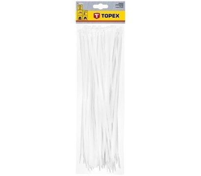 Topex 44E981 – міцні і стійкі до агресивного середовища нейлонові стяжки, що широко використовуються в задачах складання в пучок проводів в авто, при виконанні ремонтних або монтажних робіт. Ширина стяжок 4,8 міліметра. Довжина дорівнює 370 міліметрів. Колір білий. В упаковку входить 75 штук.