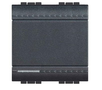 Bticino LivingLight L4003M2A Anthracite – одноканальний перемикач прихованого монтажу з автоматичними клемами в кольорі антрацит. Розрахований під навантаження 16 Амперів і робоча напруга 250 Вольт. Клас герметичності IP20. Розмір два модуля.