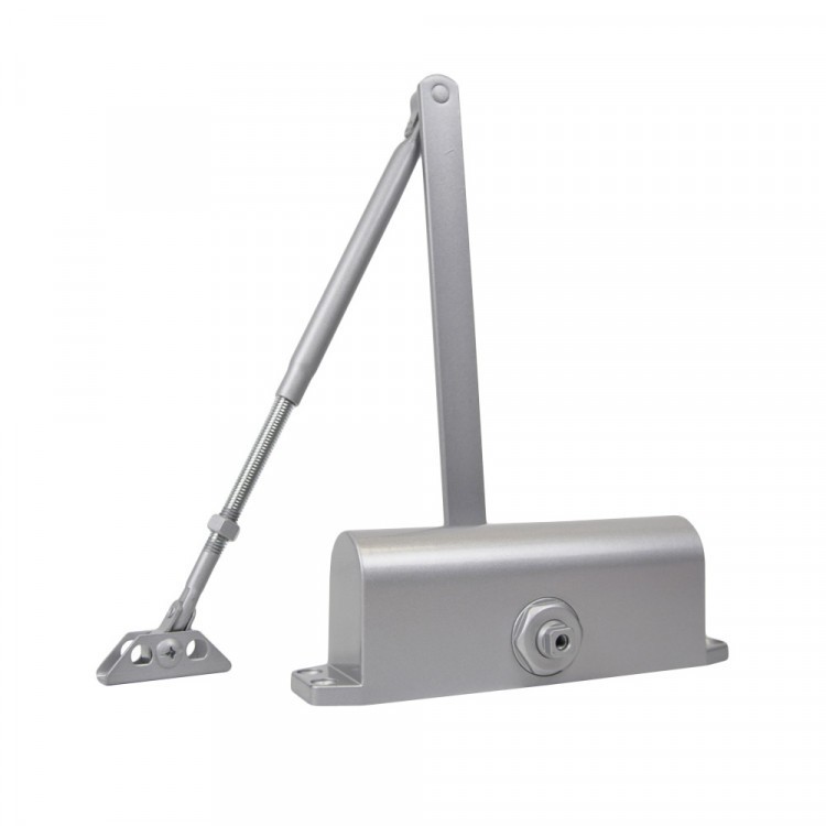 PRC A-061 Silver під монтаж високоякісна модель для дверей вагою до і шириною до . Конструкція тяги дотягувача . Іноді в дотягувачах підтримується функція фіксації, так ось в цій моделі підтримка фіксації - . Розфарбовування корпусу виконано під колір.